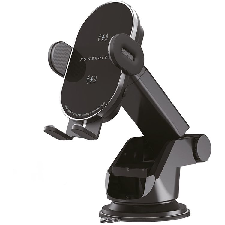 Powerology Fast Wireless 3 in 1 Car Charger Mount, 15W - Black
