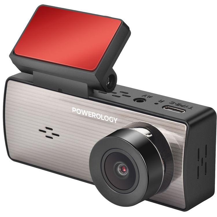 Powerology Dual Recording Dash Camera, Built-in Microphone & Speaker, 150° 4-Lane View, Collision Detection, 3.16" Wide Screen, Patented Design, Loop Recording, Parking Monitor, Type-C Charging Port, MP4 Video Format & JPG Photo Format - Black