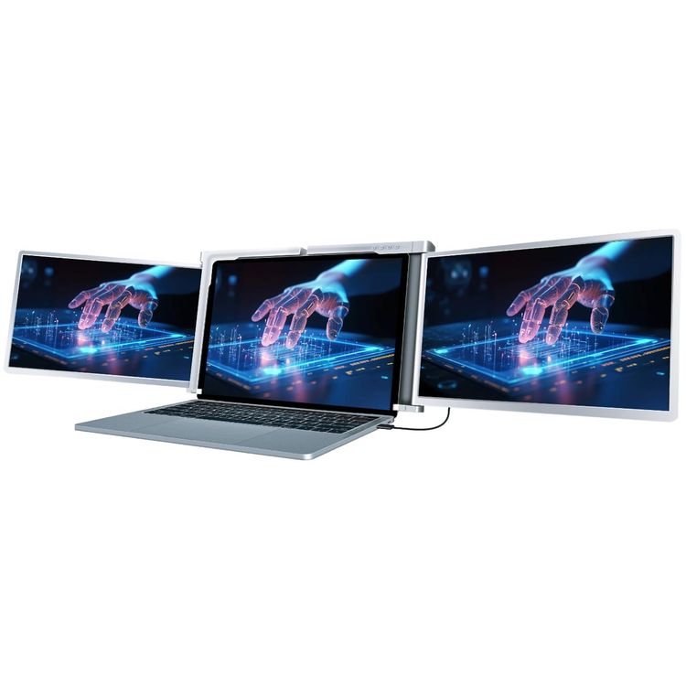 Powerology Dual Screen Portable Monitor 13.3" to 17.3" Laptops, Single Wire Connection, Windows & Mac Compatibility, 800:1 Contrast, 30ms Response Time, 16:9 Aspect Ratio - Silver