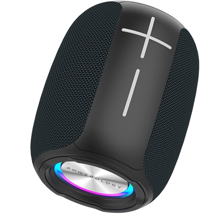 Powerology Ghost Speaker, 5h Playtime, Bluetooth 5.0, 1500mAh Battery Capacity, FM Function, IPX5 Water Resistant, Enhanced Bass - Black