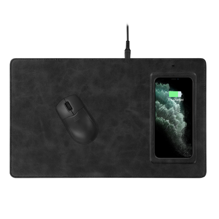 Powerology PU Leather Qi Wireless Charging Mouse Pad 10W, Case-Friendly, Fast Wireless Charging Mouse Mat Compatible for 12/12 Pro/12 Pro Max/11/11 Pro/11 Pro Max, Samsung Galaxy S10/S9/S8/Note 10 - Charcoal