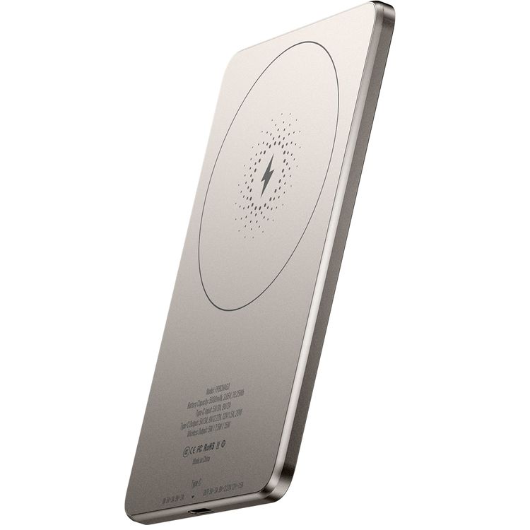 Powerology Ultra-Thin 5000mAh MagSafe Power Bank, Portable & Lightweight, Efficient Heat Dissipation, Aluminum Housing, Built-In Safeguards, Strong Magnet - Titanium
