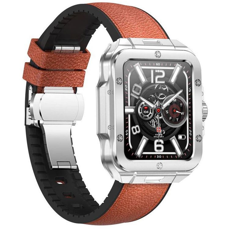 Swiss Military Alps 2, 1.85" HD Display, 4GB Built-in Memory, Workout Detection, Blood Pressure & Oxygen Level Monitoring, Make and Receive Calls - Silver Frame and Brown Leather Strap