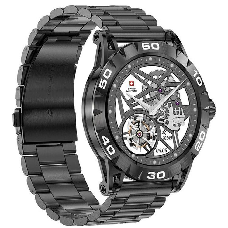 Swiss Military Dom2, up to 7 Days Battery Life, Receive & Make Calls, Heart Rate & Blood Pressure & Oxygen Level Monitoring, iOS & Android - Black with Metal Strap
