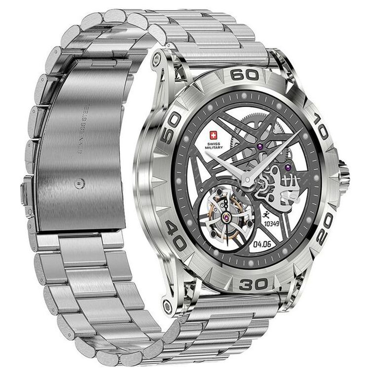 Swiss Military Dom2, up to 7 Days Battery Life, Receive & Make Calls, Heart Rate & Blood Pressure & Oxygen Level Monitoring, iOS & Android - Silver with Metal Strap