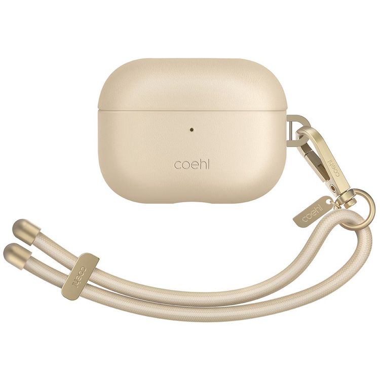 UNIQ Coehl Haven Airpods Pro 2nd Gen (2022) Case, Wired and Wireless charging, Matching Detachable Rope Hand Strap, Leatherette - Cream