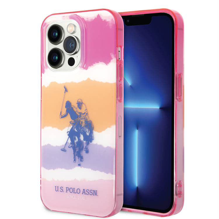USPA PC/TPU Case with Blurred Stripes & Horse Logo iPhone 14 Pro Compatibility - Pink