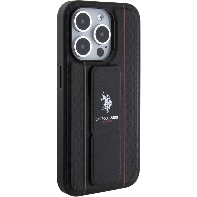 U.S.Polo Assn. PU Leather Textured Pattern Grip Stand Case for iPhone 15 Series - Black - iPhone 15 Pro