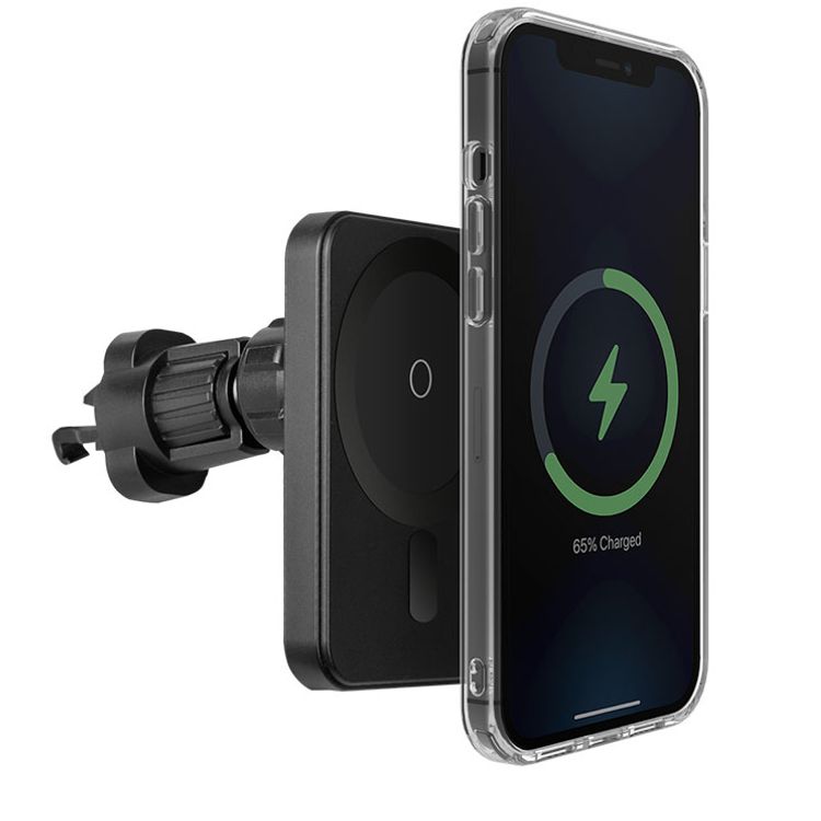 Viva Madrid Magnetic Car Wireless Charger, Fast Charging Mount Air Vent Phone Stand, suitable for iPhone 12, Pro, Max, Mini, magnetic wireless - Black