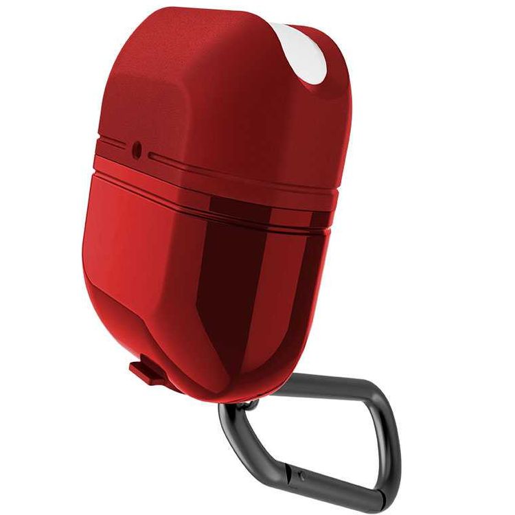 X-Doria Defense Journey TPU Case with Anti-Lost Carabiner & Loop Compatible for AirPods 1/2 - Water & Dust Resistant - 360 Degree Full Protection - Anti-Scratch - Red