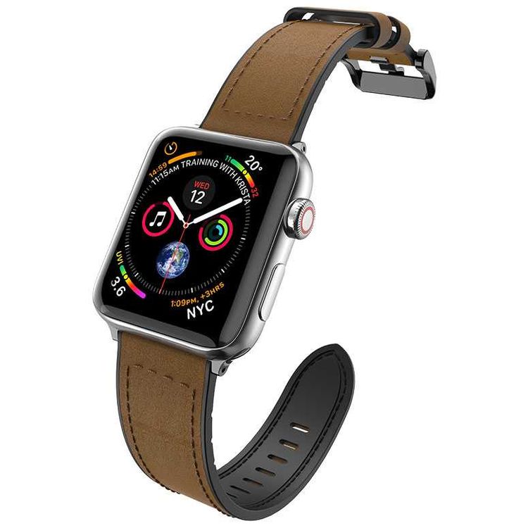X-Doria Hybrid Leather Band for Smartwatch - Fit & Comfortable Replacement Wrist Band - Sweatproof - Adjustable Straps Compatible for Apple Watch 42mm / 44mm - Brown Leather